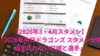 ブログ 「2026年中日ドラゴンズ スタメン分析【3〜4月】固定されない打順と選手たち」 2026年シーズン開幕から4月30日現在、中日ドラゴンズのスタメンデータを見て真っ先に目につくのは「打順が全然固定されていない」という事実だ。そのデータをもとに、約1ヶ月間で見えてきた傾向と課題を分析した。 2026.05.01 ブログ