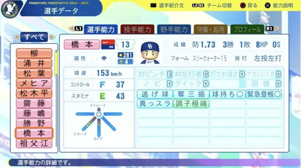 11月20日第14回アップデートが行われました。2025年終了時のデータが反映されています。今回は橋本選手です。