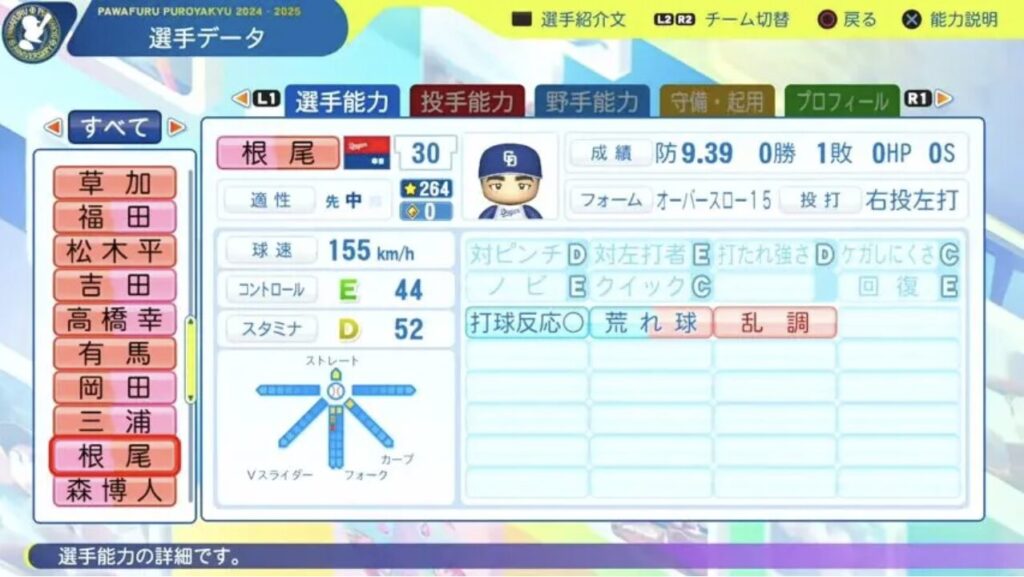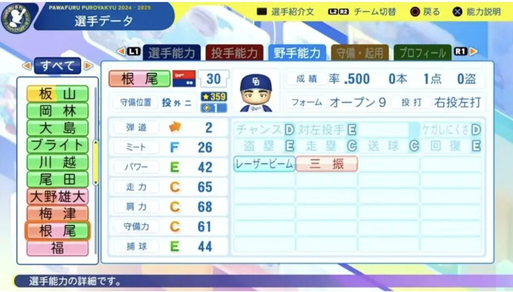 パワプロ2025年シーズン終了アップデート ドラゴンズ#30根尾選手