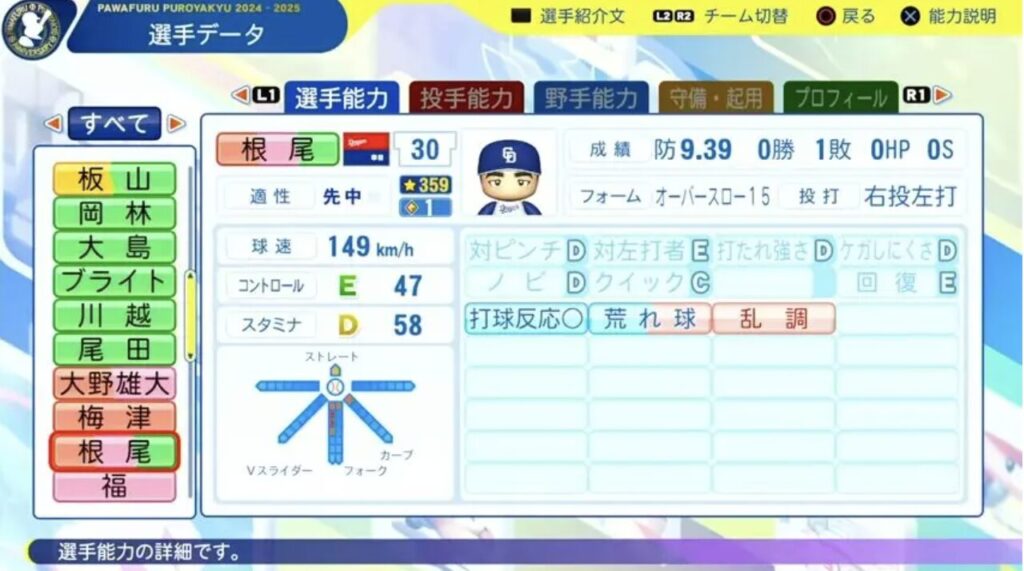 11月20日第14回アップデートが行われました。2025年終了時のデータが反映されています。今回は根尾選手です。