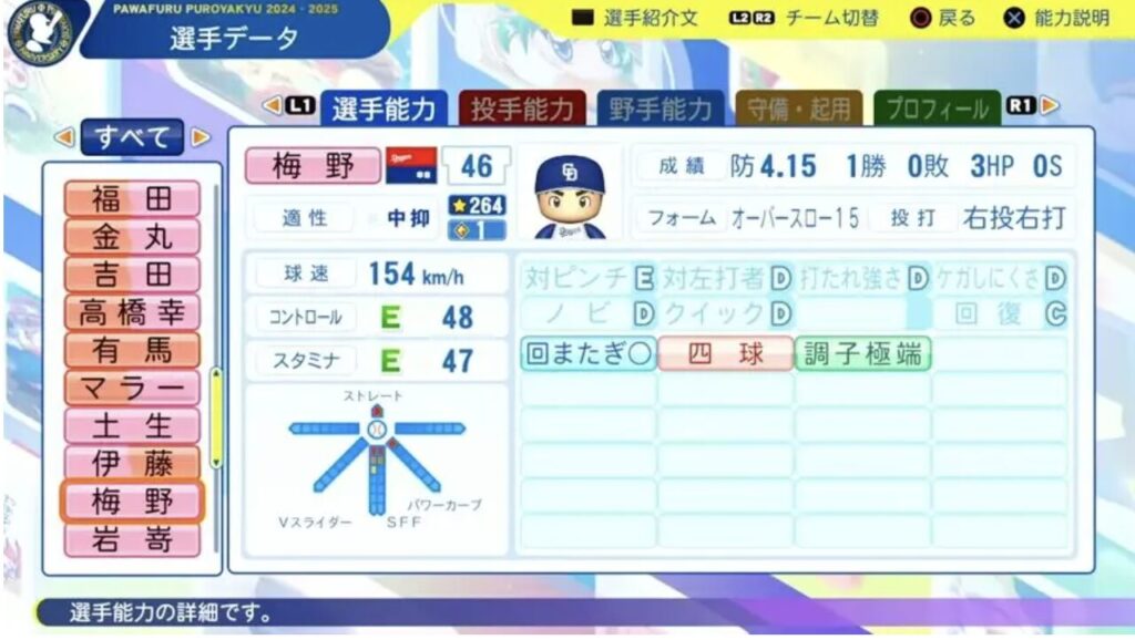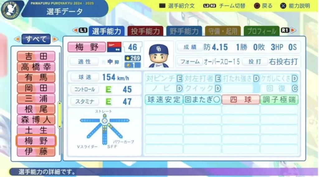 11月20日第14回アップデートが行われました。2025年終了時のデータが反映されています。今回は梅野選手です。
